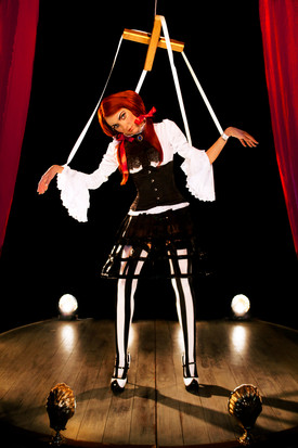 A marionette dreams of becoming a real girl and makes a deal with a woman. This woman is not who she seems, but is an evil queen with many powers – even so she grants the marionette’s wish. The marionette is so pleased with this she does not realize she has made a huge mistake. When she made her wish she did not specify that she wanted a body of flesh and blood, a voice, and a free will. Thusly the queen gave her exactly what she wanted – the marionette still has her strings, her ball jointed body, and cannot move or speak without someone else controlling her. She is a soul trapped forever in a carved body.