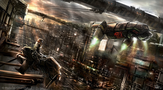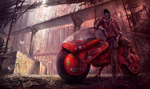 apocalyptic urban area (Japan?), grunge/grit, motorcycles: damn fine image, very interesting to look at.