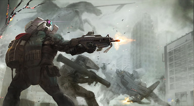 The ship behind those armored suits looks awesome, but still not as cool as the suits.