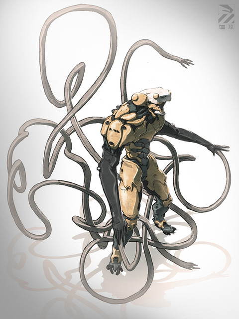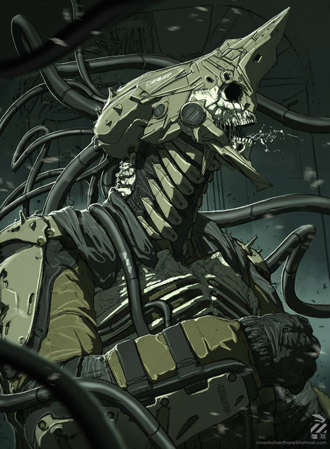 HOLY FUCK this is ridiculously cool, love how you juxtapose the disturbingly organic with intrusively cybernetic elements. Very rare but practically perfect fusion of the two design styles. Please please please make more that follows this cyborg theme.