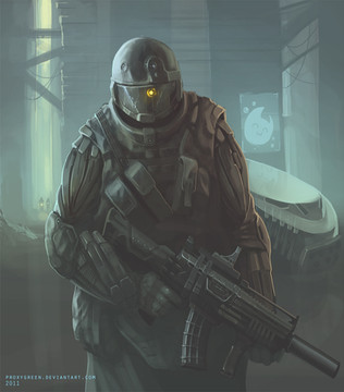 The soldier's uniform reminds me of WH40k Imperial Guard (<_>)