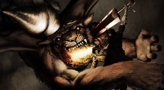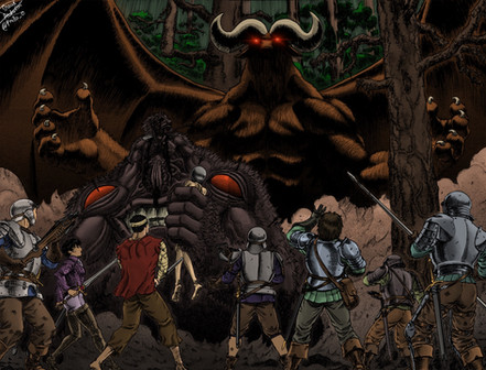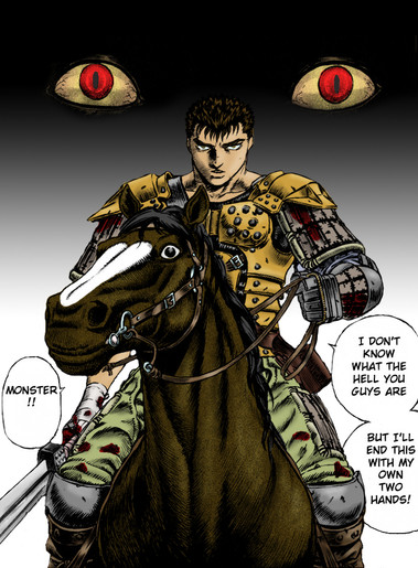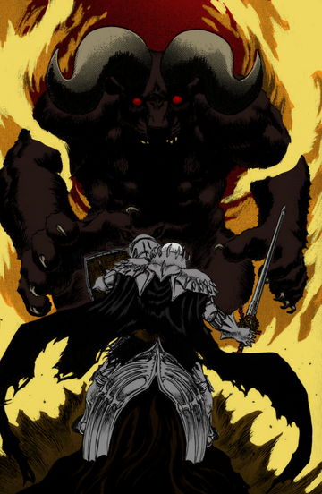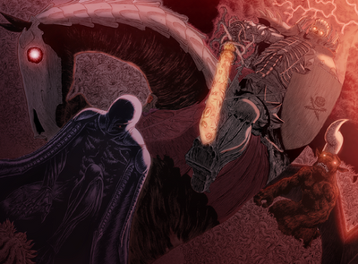 For Fans of the Berserk Manga, This is a pic of the Skull Knight and Zodd getting ready to do combat outside the festival where the Band of the Hawk is being slaughtered for Griffith's dream.Related content