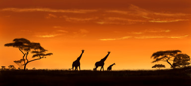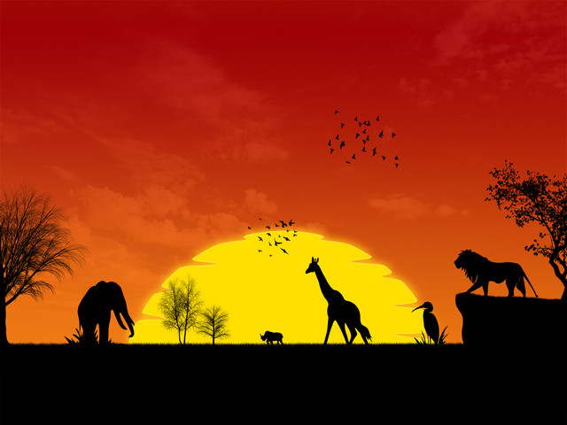 I love it! An interesting way to show the circle of life. The bright sunset compliments the silhouettes of the animals wonderfully.