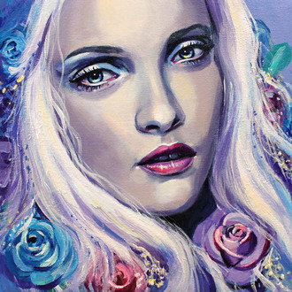 First painting of 2015! Here is my piece for Bash Contemporary's group show "Myth, Magic and Lore". www.bashcontemporary.com/exhibβ¦Astarte is an ancient goddess who was associated with fertility, love, sexuality, and war. She is was often depicted with doves and the circular moon and star- representing her planet Venus.Β