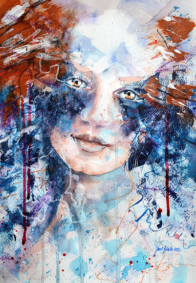 SO LOVELY! I like the way her hair resembles rain and the colors you've chosen out truly adds to this effect.
