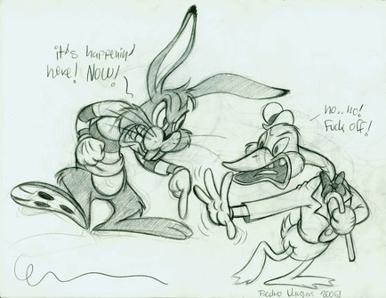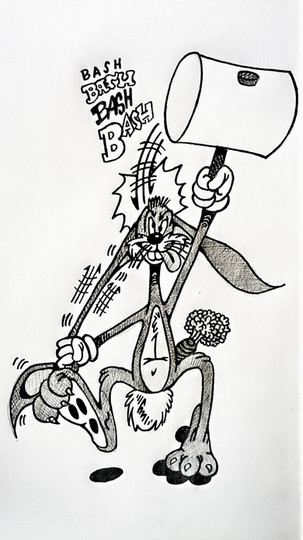 My first picture of 2005! Yippee for me!Here's Spy Bunny, buying a new violent video game on the market. He LOVES violent video games.