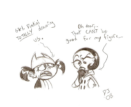 I have NEVER heard that quote before, but my God that's hillarious! I love the expression on the little goth's face. This would look great colored! Awesome work.
