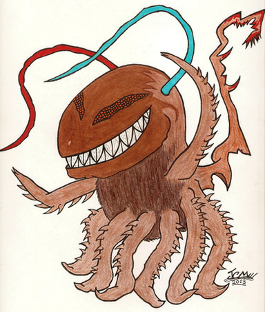 Beware all ye who travel too far into The Dustyverse, for you might cross paths with one of these abominations.If you wander the lower caverns and happen upon this horrid mistake of imagination all you can do is make peace with what ever Deitie you worship, for seeing this awful creature surely means your life has come to it's end.