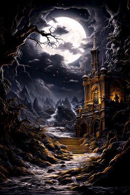 #adventure #atmospheric #car #castle #classic #digitalart #drawing #fantasy #fantasyart #gothic #halloween #horror #illustration #lantern #lightning #monumental #moon #mystery #night #path #roots #rusty #sketch #spooky #tree #vehicle #vintage #synthography