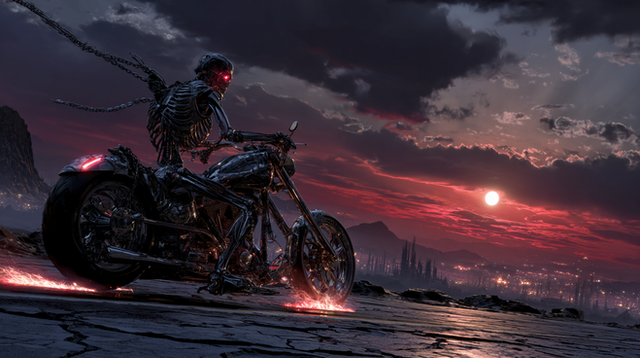 #horror #apocalyptic #epic #motorcycle #badass #bike #chains #cinematic #cracked #desert #dust #fullbody #ghost #glow #heat #helmet #leather #lone #metal #photoreal #postapoc #realistic #rider #road #ruins #scorched #shadow #skeleton #smoke #fire