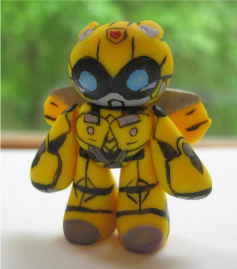 Some very careful cutting with the Dremel cutting wheel and wire brush made the body more feminine, and I simply cut the chin off Bumblebee's head then rebuild the face and scratchbuilt horns.Unpainted: [link]