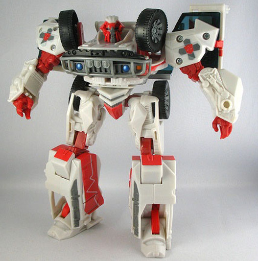 Years ago, I got a spare Energon Tow-Line with a broken weapon as part of a trade lot. I set it aside in my kitbashing area with the intent of making it into the A-Team van. And there it sat, gathering dust, for years. I finally got around to this project, dyeing much of the toy black so that seams wouldn't be obvious (the original toy has a lot of bright blue) and painting it in gloss black, gloss signal red and silver chrome. I did try painting a spare Energon Hot Shot gun clear red to give B.A., but wasn't happy with the results.Anyway, this is a Crossovers Transformer, B.A. Baracus turning into a newer model van than the old Vandura. The Vandura had dark metallic gray above the red stripe, but I decided I preferred the looks of all black and red.