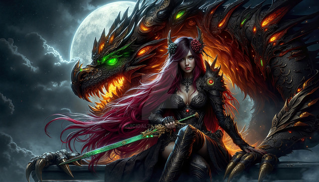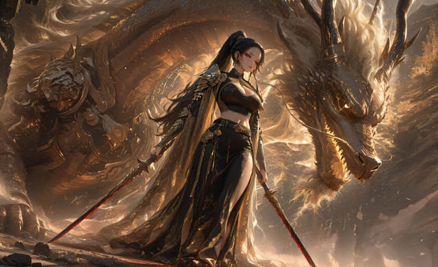 #dragon #digitalart #fantasycharacter #fantasyart #magic #warrior #characterdesign #ai #battle #epic #female #girl #sword #warriorwoman #aiart