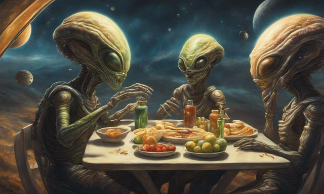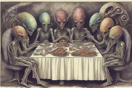 #alien #aliens #cooked #cuts #dark #dishes #drink #earth #eat #eating #figures #flesh #flower #food #fork #grilled #head #horror #humanity #humanmeal #humans #light #lights #meal #meat #message #planet #planetearth #plants #roasted #roots #sauce #shadow #shadows #space #spaceship #stains #table #ufo #vegan #vegetarian #vegitables