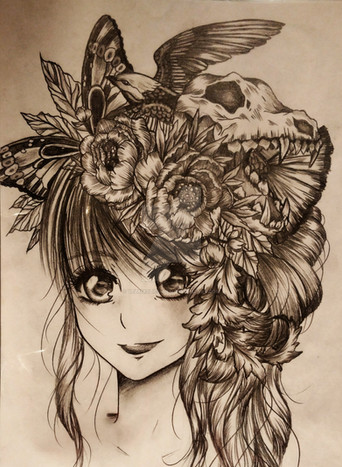 It actually has a b/w filter on it cause the lighting in my room makes everything look yellow -__- and it was night so I couldn't really use natural light at the time I took the picture. I'm glad you like the drawing though ^^