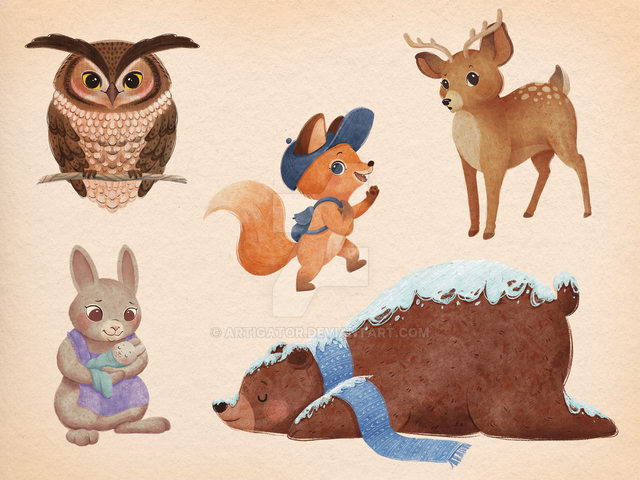 #animal #animals #badger #barnowl #characterart #fox #hedgehog #mouse #owl #rabbit #squirrel #conceptart