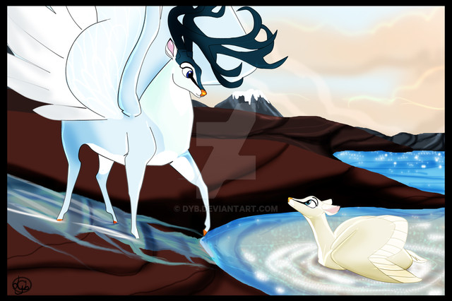 <3 I love your swan deer, especially their expressions in this particular piece!
