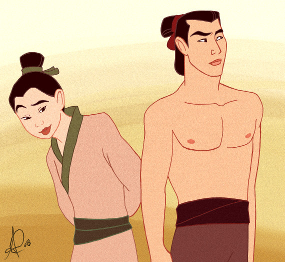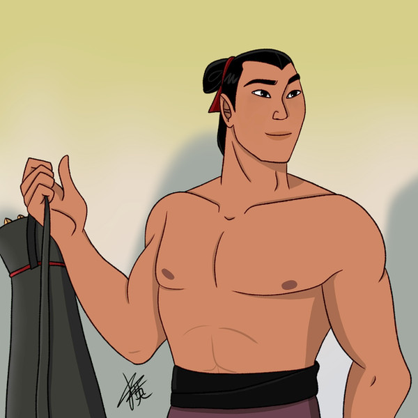 Li Shang having a bathmulan is passing by and cought by the sight of the beatiful godlooking guy...takes her a few seconds before she se that its her captain..