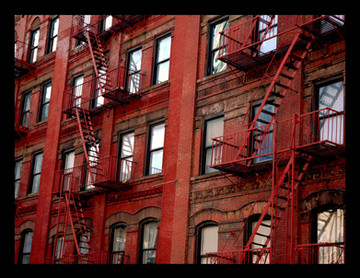 quite a nice reminder of what a city looked like in the old days. i like stuff like this a lot. the structure of the building itself reminds me a little of the building always featured in seinfeld. i think the emergency stairs is really what stands out in this picture though, even if there is no "center of attention" popping out.