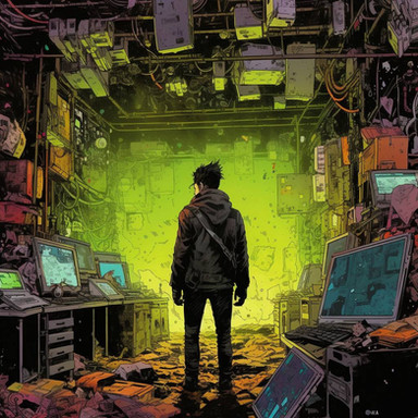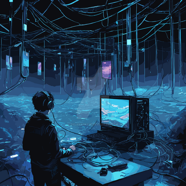 #bluehues #computerart #conceptualart #cyberpunk #digitalart #electronics #futuristic #informatics #neonlights #sciencefiction #scifiart #serverroom #technoir #technology #virtualworlds #wiredworld #circuitart #datacables #programmingart #isolatedfigure #artificialintelligenceart #techaesthetic #mysterytech #modernisolation #techexploration #digitaldepths #innovationart #binaryinsanitycollection #lonelinessintech #techdreams