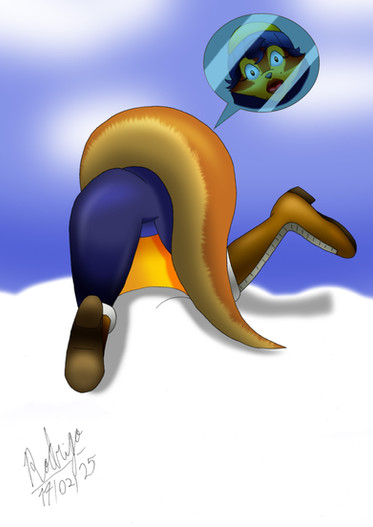 A poorly executed rope swing leads to Tawna plunging headfirst through a porthole and getting stuck halfway. To make matters worse, an enemy made off with her shoes! Crash and Coco are going to have to wait on a rescue until Tawna gets herself unstuck, which may be a while.Started Crash 4 over and figured Tawna would make for a good stuckee. 😁