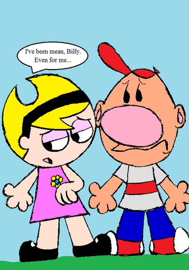 Mandy: *Sniff* Billy, he was the only true friend I had, and now he's gone, *More tears form* I'm all alone, I feel so empty, *Crying tears of genuine sadness and genuine regret* you're my friend Billy, I'll never forget you, and I'll always be your friend. *Crying tears of genuine sadness and genuine regret*Β