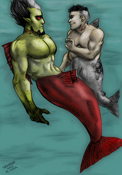 I'm a part of this Chrisker server on Discord which can be pretty cool to be a part of at times and we're playing a game of BINGO with some Chrisker prompts. This one was "Merfolk" and I had this idea of the two being kids and struggling to get along and just had to draw this and I think it came out really cute!Thanks to Ardnaif and Beef for making the Chrisker BINGO a reality!