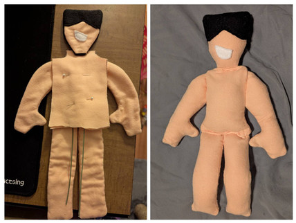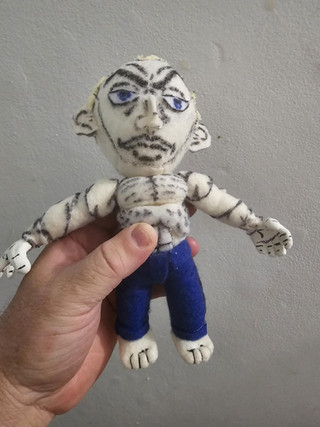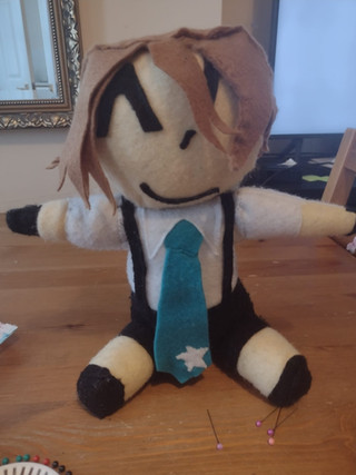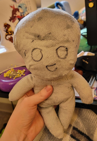 Rowen is my first and favorite DnD character, I've gotten to play him a few times and I absolutely love him even though he can be an asshole!First plushie I've ever made! I think he came out really well but it was definitely a learning experience. Originally I made the feet like the hands but then decided to make actual feet afterward and cut the nubs to attach them. Why did I do that and make all future plushies more difficult with the addition of feet? Because I like boots and I wanted to be able to make his boots. I didn't like the look of the fabric marker directly on it so I actually colored his scars on the inside of the fabric and I like how it turned out! I'll eventually get around to finishing his clothes...