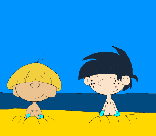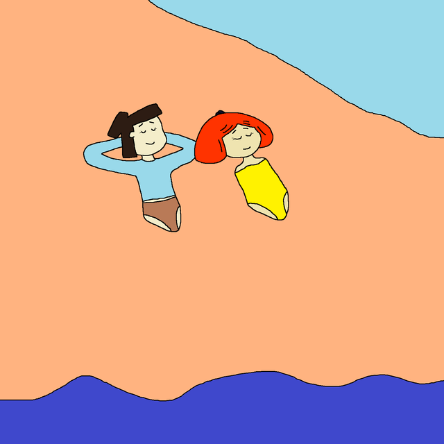 After playing on the beach Patty and Xavi lying in the sand on the beach relaxingRelated content