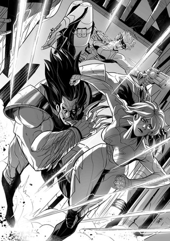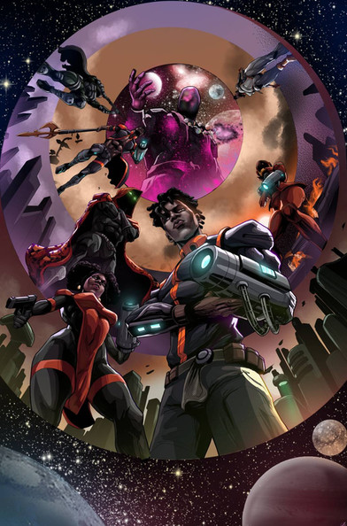 The Cover for Tech Jacket #5. This cover is pretty special because I did the rough for this cover. This cover is pretty special because I did the rough for this cover. That's the type of working relationship Khary and I have. He trusts my instincts as an illustrator.If you want to get a good idea of what the series is like head over to Comixology. We did 3 digital issues www.comixology.com/Tech-Jacket… ;