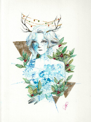 Made using Traditional mediums : Ink, watercolour, pastel and colouring pencil