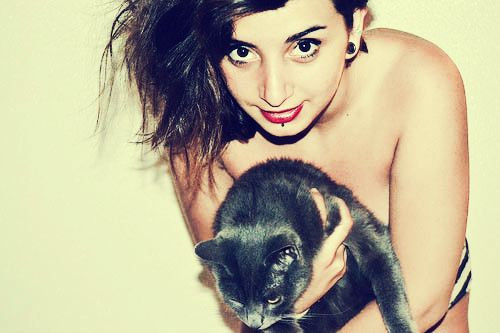 With Fluffy the (nearly) hairless kitty.Copyright: AJ Kahn