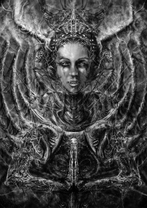 It looks as though the spirit of Giger lives on...and I'm glad to see it! This really offers a remarkable feeling of the ancient and the unknown in a nice dark, surreal package. The detail here is astounding, but I won't ask any questions. Congratulations!