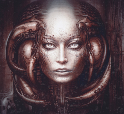 is anyone else bothered by the fact that there is a clitoris sticking out of her head? Its a skillfull piece, but the giger sexual tension between man and tech always sortof feraks me out.