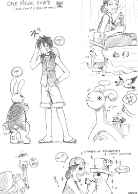 hee hee X333 That is so very cute!! I luv both Luffy's and Usopp's expressions ^3^ heh the fish too! Lovely little doodle!!