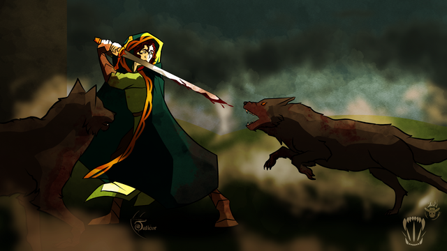 #curse #digitalart #diptych #fantasy #humanity #knight #wolf