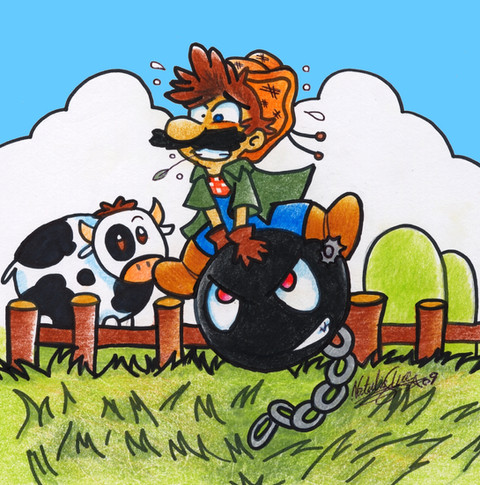 Anyway, nice work on the piece! There's some nice shading and perspective going on. Does this ever happen in any Mario game, or is it your own idea?