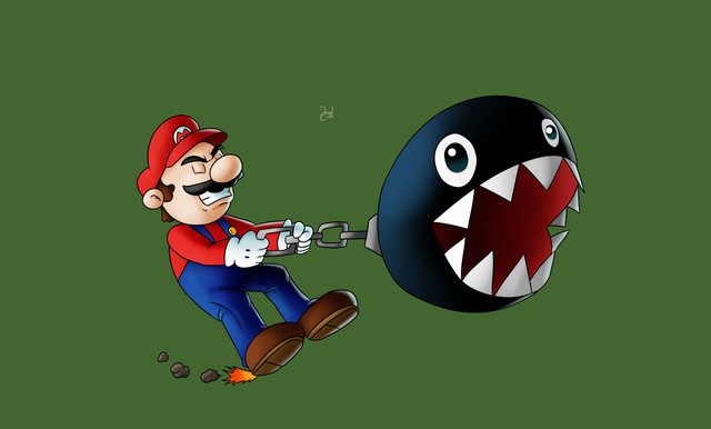 I was kinda playing off the giant Chain Chomp in the first level of Super Mario 64, although I've never tried throwing a bomb at it before lol.