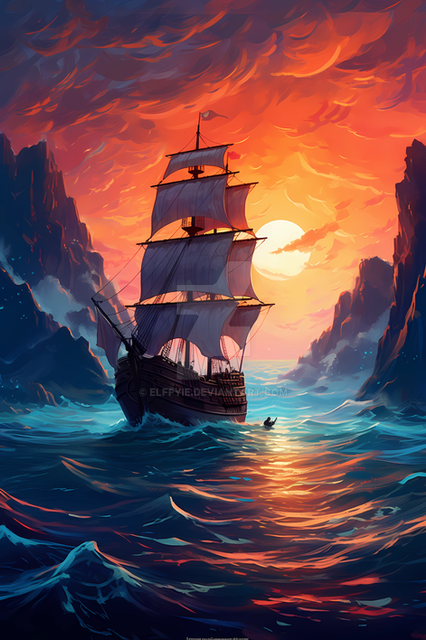 #ai #digitalart #digitaldrawing #illustration #landscapedesign #oceanview #sea #seascape #sunset #tabletdrawing #seasunset #sunsetsail #romanticevening #seasideview #vacationtime #adventureart #travelart #procreateart #beautifulhorizon #midjourney