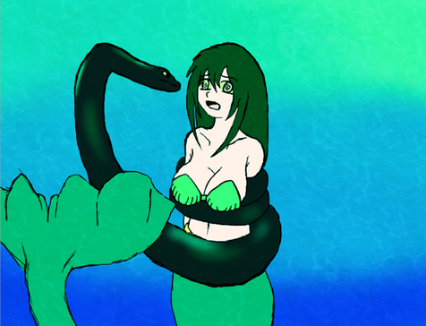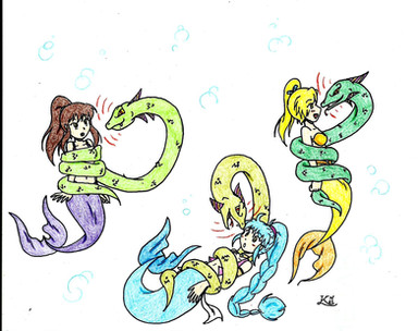 And finishing off the amazing trio of commissions from TAPbagan we have Rina from Mermaid Melody, caught in the coils of a snake underwater and being hypnotized by it's eyes.Thanks again for doing these amazing commissions for me, TAP