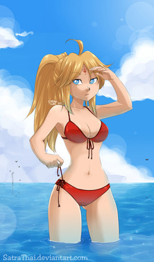 горячая, привлекательная пионерка в купальнике. Это дело не может не нравиться :3