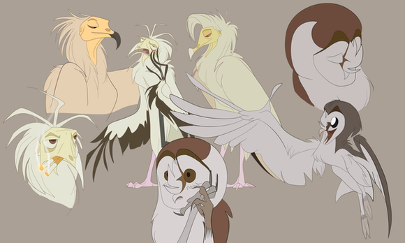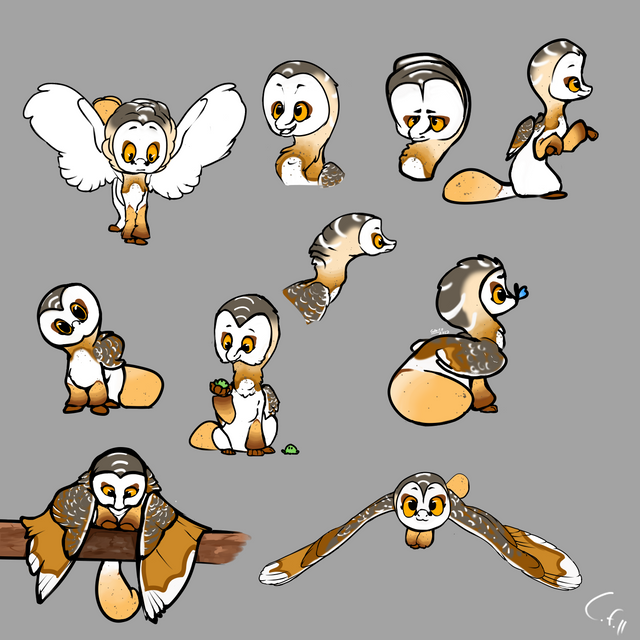 These were more concepts and I didn't try to base them off any specific breed, but the full-fledged characters that these became are an African Grass Owl (sta.sh/016k4zljhz3p ) and the African subspecies of Common Barn Owl (sta.sh/0pjpk18j0gk ).