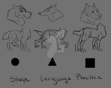 As for shape language, that's something I'm trying to work on more myself lately. I adore exaggerated and fun shapes, but I don't have quite as much 'focus' or control over it yet in my own work. It's a great reminder to see the fundamental 'personalities' of some of the basic shapes boiled down (especially being someone who is easily overloaded by too much information at once), and using dogs is a good way to convey what you mean without distracting from the point.