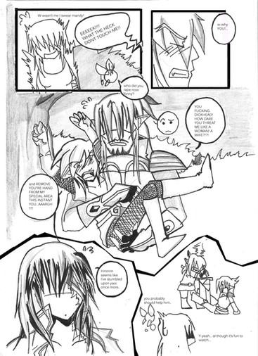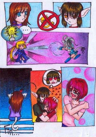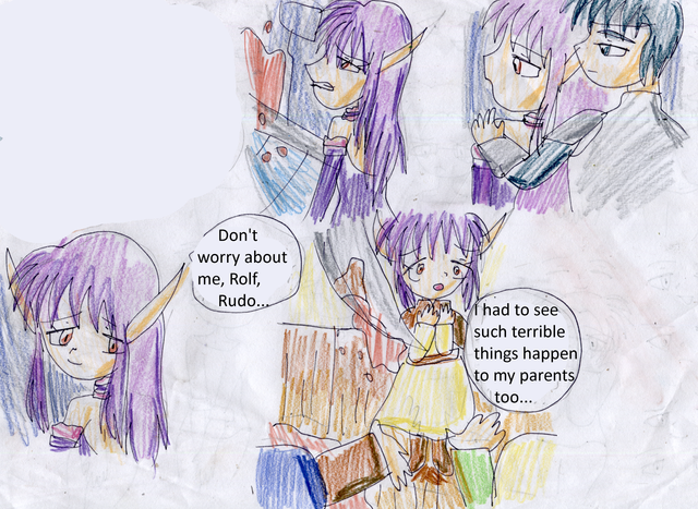I'm part of this Slayers drabble group on livejournal, in which there's a different theme every week and everyone writes a drabble to fit that theme.A few weeks ago, the theme was "children" and we had to write the Slayers as children. When I wrote mine, I couldn't resist doing a comic verison and thus I made thus. I wrote the text by hand, so sorry if people are having trouble reading it.
