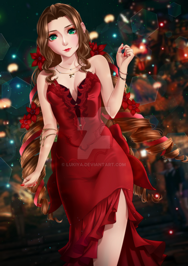FF7 fanartAerith Dark Red Dress