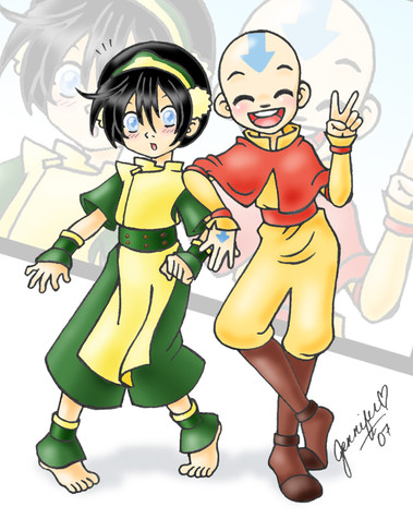 Sokka and Toph are characters from A:TLA which is created by Michael Dante Dimartino and Bryan Konietzko, and copyrighted by Nickelodeon, a subsidiary of Viacom.