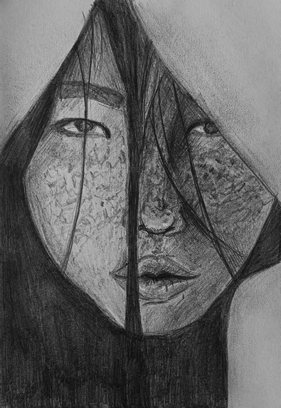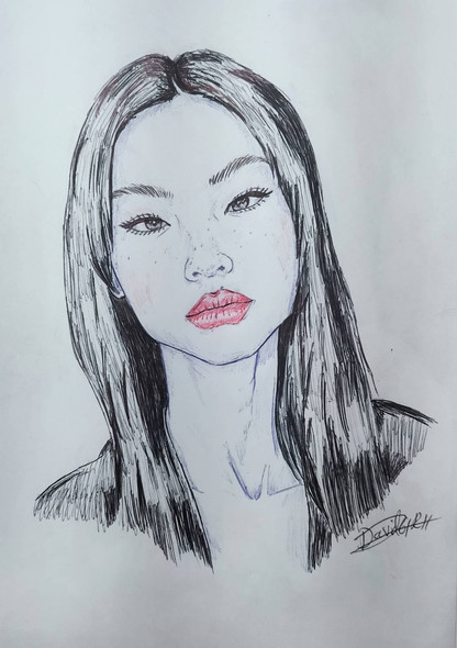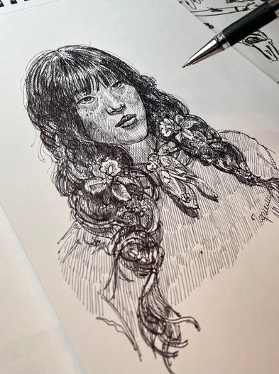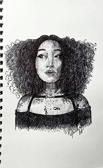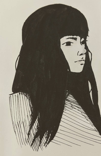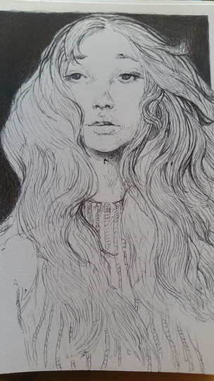 #black #face #girl #hair #pen #portrait #simple #white