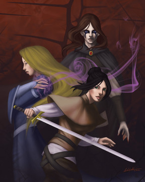 Oh dans ce cas autant parler français Celle ci est certainement ma préférée des trois, elle est époustouflante et j'aime particulièrement les auras divines autour des trois personnages. Et je peux enfin poser la question : il s'agit bien de Tarod, en bas à gauche ?