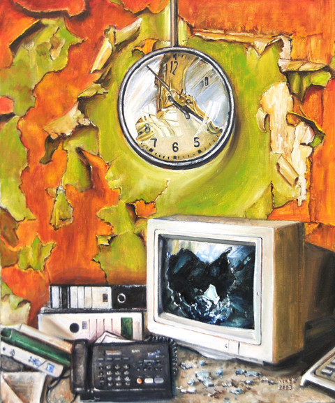 have i seen this? maybe i saw it before it was done. oh well, i like the way you show technology and a city in the painting without actually ever showing either of them. its just all these shapes that our minds make it into something.