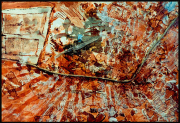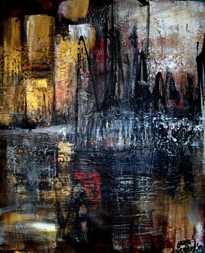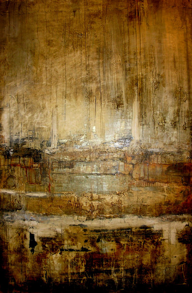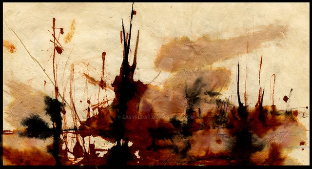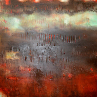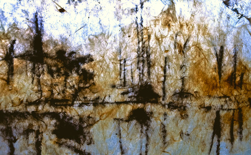I can see an landscape here. the tress and the tress shadows in the water feflecting. yet still it has alot of abstact feeling into it.. well done.i think this is amazing. sure give it my new FAV. wonderfull work. amazing really.. i really like rice paper.. with inks and oild pastels. amazing work.. well dont. the usaged of earthy colours it wicked.. i love the way u use lines